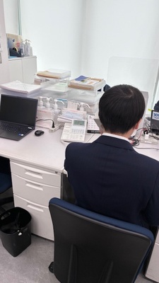昨年末に入庫し、今年1月から渋谷支店に配属された職員です。支店に新しい風が吹きました。電話対応など、先輩からの指導を受けながら仕事に励んでいます。