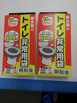 地元商店会「明和会」様から、トイレ非常用袋をご支給頂き常備しております。