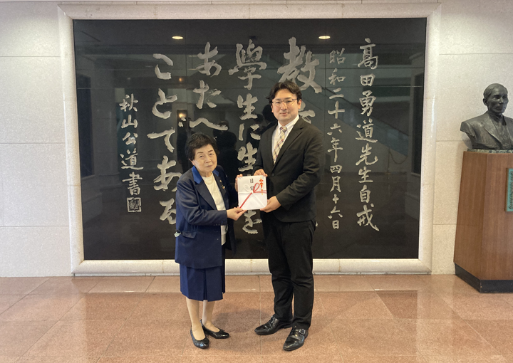 新宿区高田馬場駅から徒歩3分、神田川沿いにある東京富士大学さんをお伺いしまして、「地域みらいプロジェクト」の活動資金の進呈をさせていただきました。