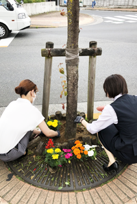 5月26日、福生商店街協同組合主催の「花の苗植栽」に、当金庫から3名(新入職員と若手2年目の職員と私)が参加しました。