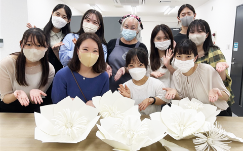 実際にわたしもローランズの従業員さんや学生さんに交ざってビッグフラワーを作ったのですが、約1時間で完成!普段なかなかできない体験でとても楽しかったです。どの花も完成度が高くて1輪ごとに異なる手作りの良さがありました。