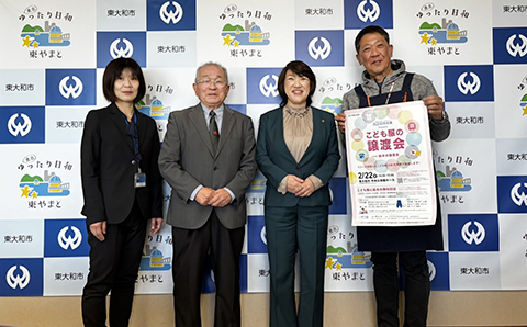 開催前に東大和市長室を表敬訪問して、市長にご挨拶をしました。不要になった子ども服の利活用で子育て世代のご支援と循環型社会創出で環境保全を目指す取組みについて説明させていただきました。