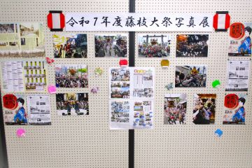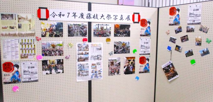 本ロビー展では、藤枝市観光協会さまの協力のもと、令和7年10月に開催された「藤枝大祭」の写真コンテストへの応募作品や、岡出山地区の方々が大祭に寄せたメッセージ等を展示しました。