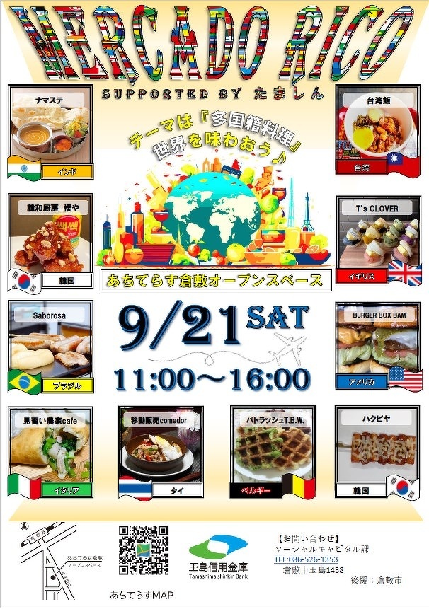 また、2021年に誕生した商・住・公・医の複合施設「あちてらす倉敷」オープンスペースの利活用の活性化、美観地区から大通りの反対側への人流を作るための賑わい創出、賑わいの創出による「あちてらす倉敷」入居の飲食店支援を目的に開催しています。