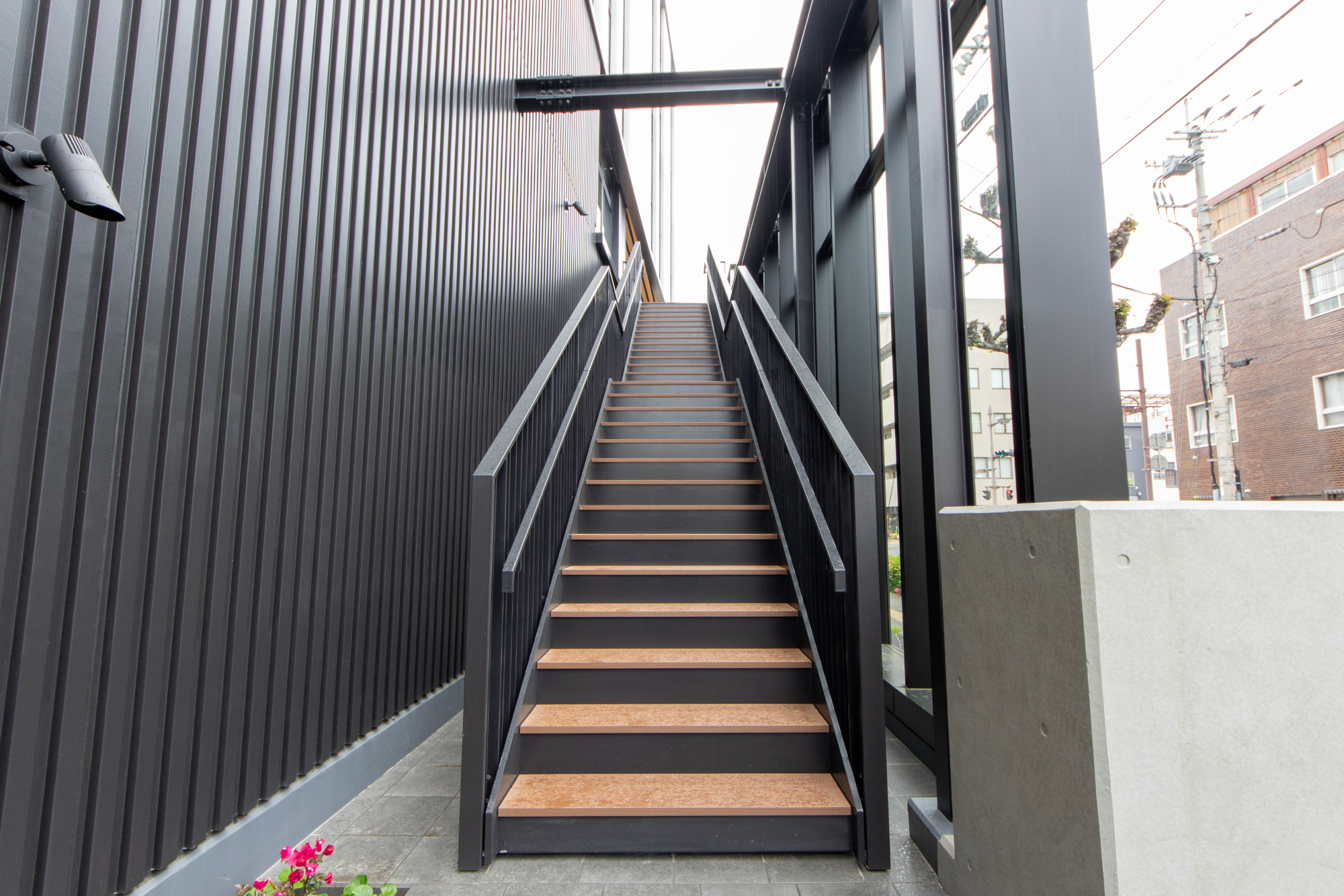 建物東側には、2階パブリックスペースにつながる専用階段がございます。ご利用くださいませ。