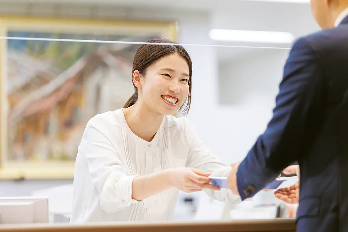 現在は、窓口で預金や振込などの手続きを担当しています。正確さとスピード感を意識して、業務を行っています。また、お客さまのご相談内容に応じて、保険商品や投資信託のご案内を行うこともあります。お客さま一人ひとりの状況やご意向を丁寧に伺うことを心がけています。