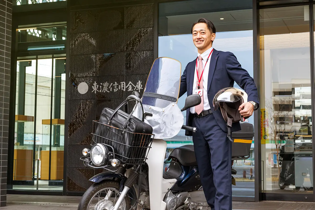 私がとうしんに入庫したいと思った理由は2点あります。1つ目は地元で働き、地域貢献をしたいという思いからです。私は生まれも育ちも可児市なのですが、この地域が大好きです。そんな地元で地域のお客さまと関わり合う仕事ができるなんて幸せなことだと感じていました。2つ目は働き続ける安心感です。とうしんは地域の皆さまに支えられ100年超の歴史があります。安定した経営体制、財務、人材育成等の基盤があり、自身が継続して働くことができる安心材料ばかりです。様々な企業との出会いがありましたがこの2つは譲れなかったですし、それを考えたときにとうしんしか選択肢はなかったです。