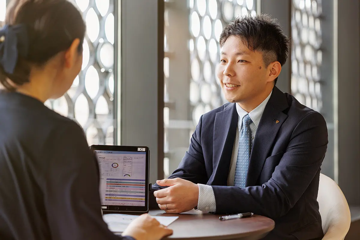 “動くとうしん”として、地域の企業やご家庭を訪問します。お客さま一人ひとりのニーズにお応えし、預金や融資をはじめ、さまざまな金融商品・サービスのご提案を行います。