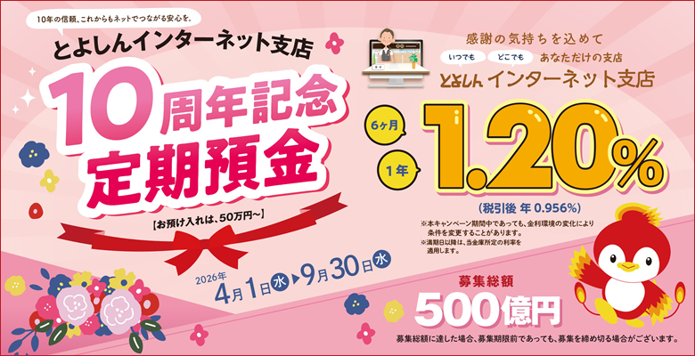- お待たせしました。2026年4月1日より「10周年記念定期預金」を発売します。